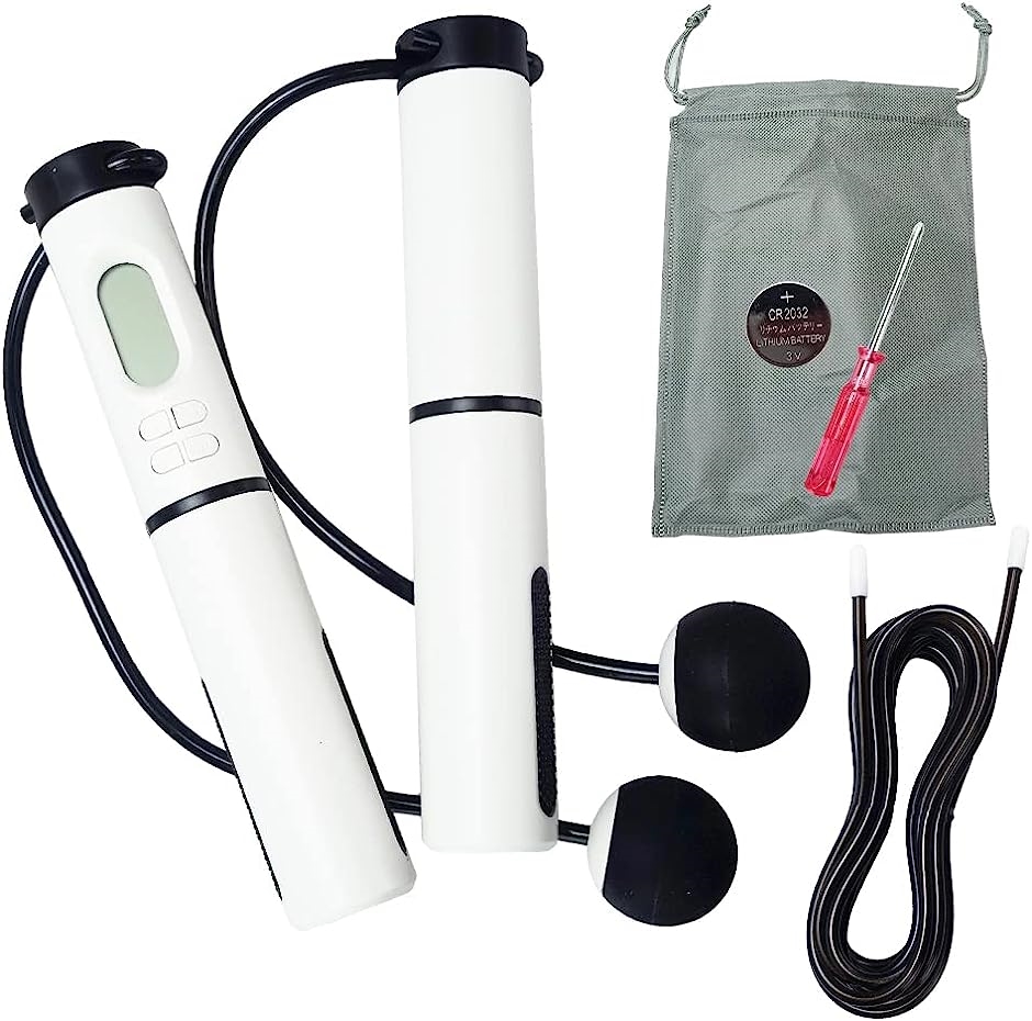 ・「セット内容」ハンドルx2本 ショートロープx2本 ロングロープx1本 ドライバーx1本 ボタン電池x1個 収納袋x1枚 「サイズ(約)」グリップ:全長17.2cmx直径2.9cm ショートロープ:29cm ロングロープ:279.5cm 「重量(約)」ハンドル:110g ショートロープ:36g ロングロープ:64g